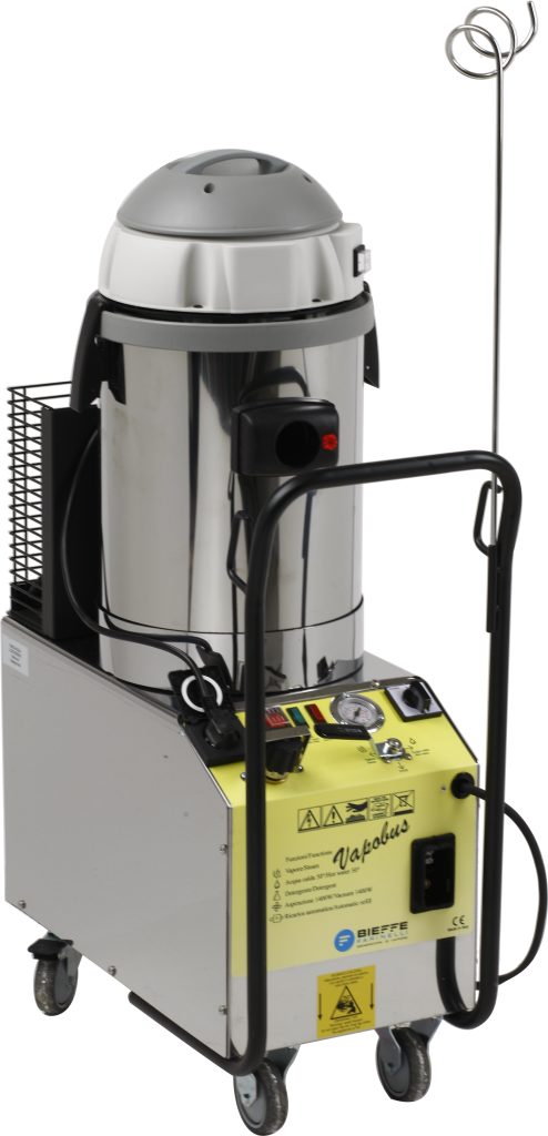 - La VAPOBUS: Generatore di vapore con aspirazione per la pulizia e sanificazione di corridoi ed interni autobus,camper,carrozze ferroviarie,divani e materassi.