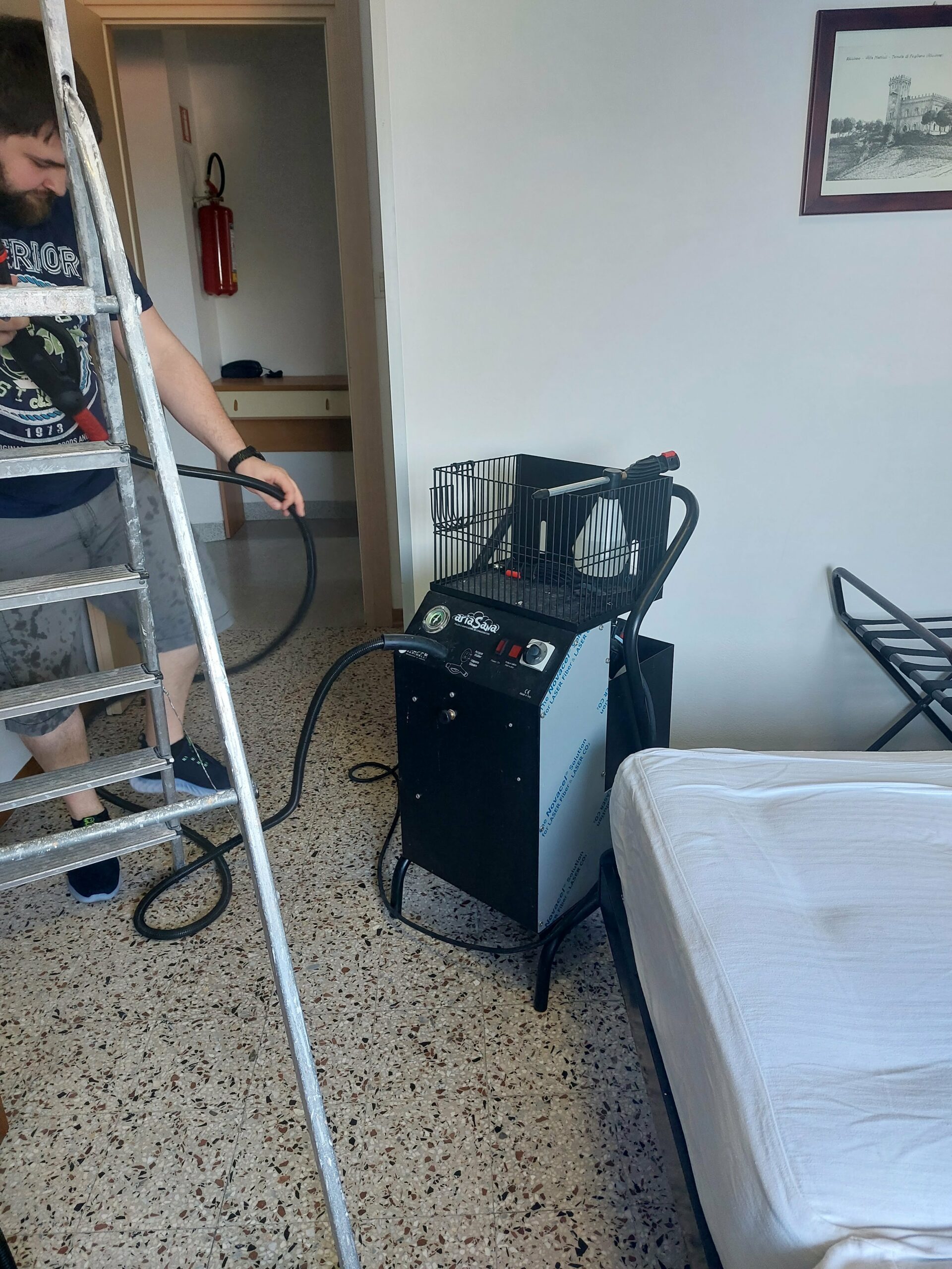 AriaSana è un generatore di vapore per la pulizia dei condizionatori d’aria, ideale per la pulizia degli split negli uffici, nelle case, nelle banche, negli ospedali, negli hotel e in tanti altri luoghi pubblici e non. Grande e concreta opportunità di un nuovo lavoro, soddisfacente per l’operatore, per il cliente e redditizio