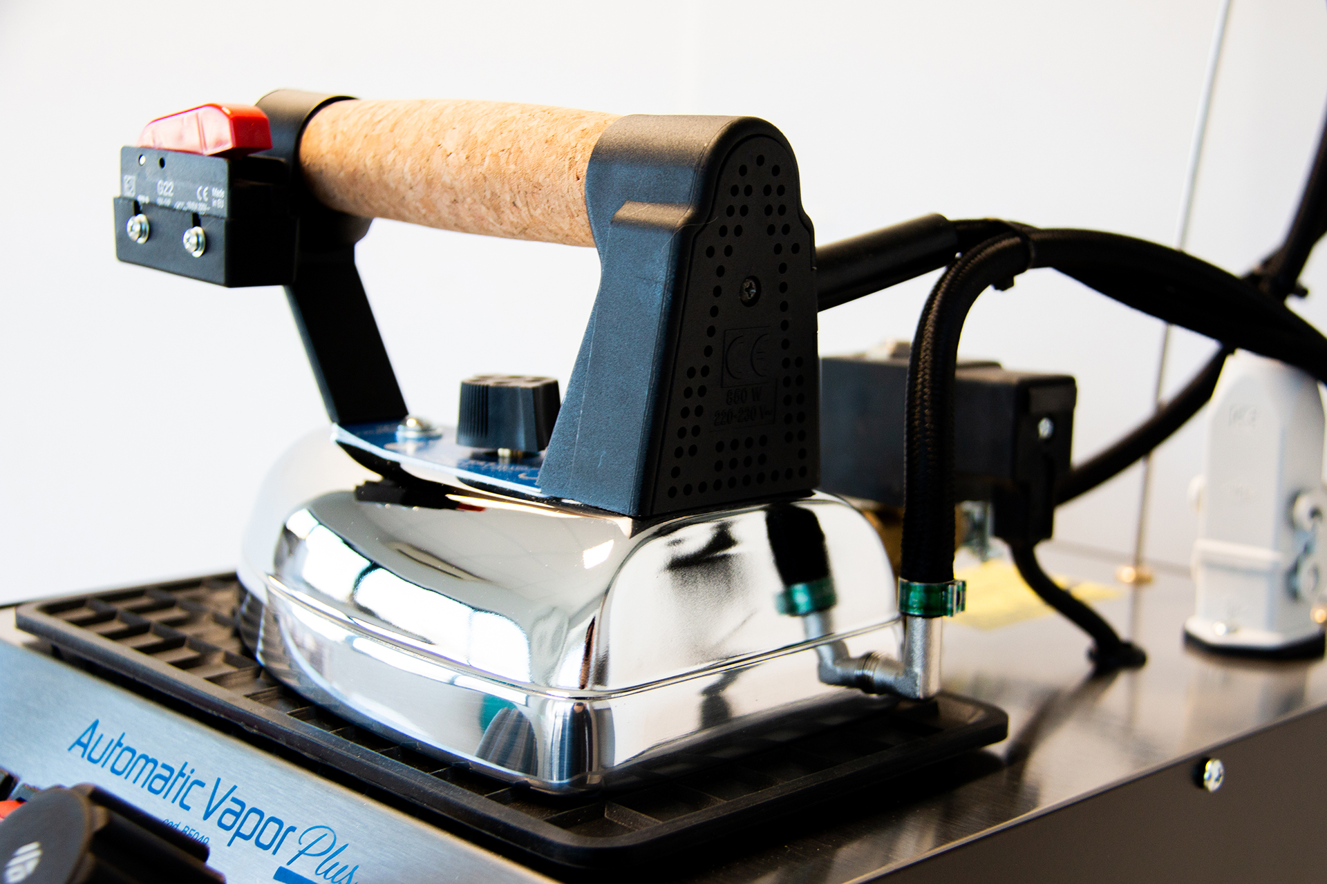 Ferro da stiro professionale compatto con caldaia a ricarica continua automatica.