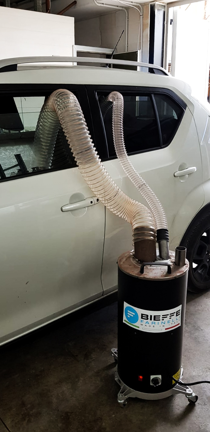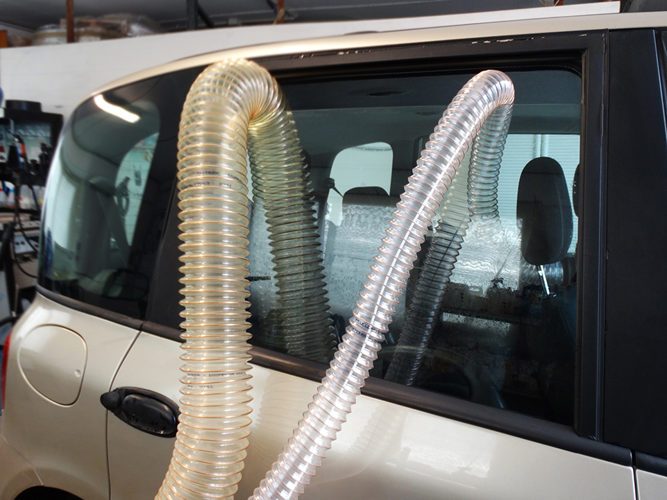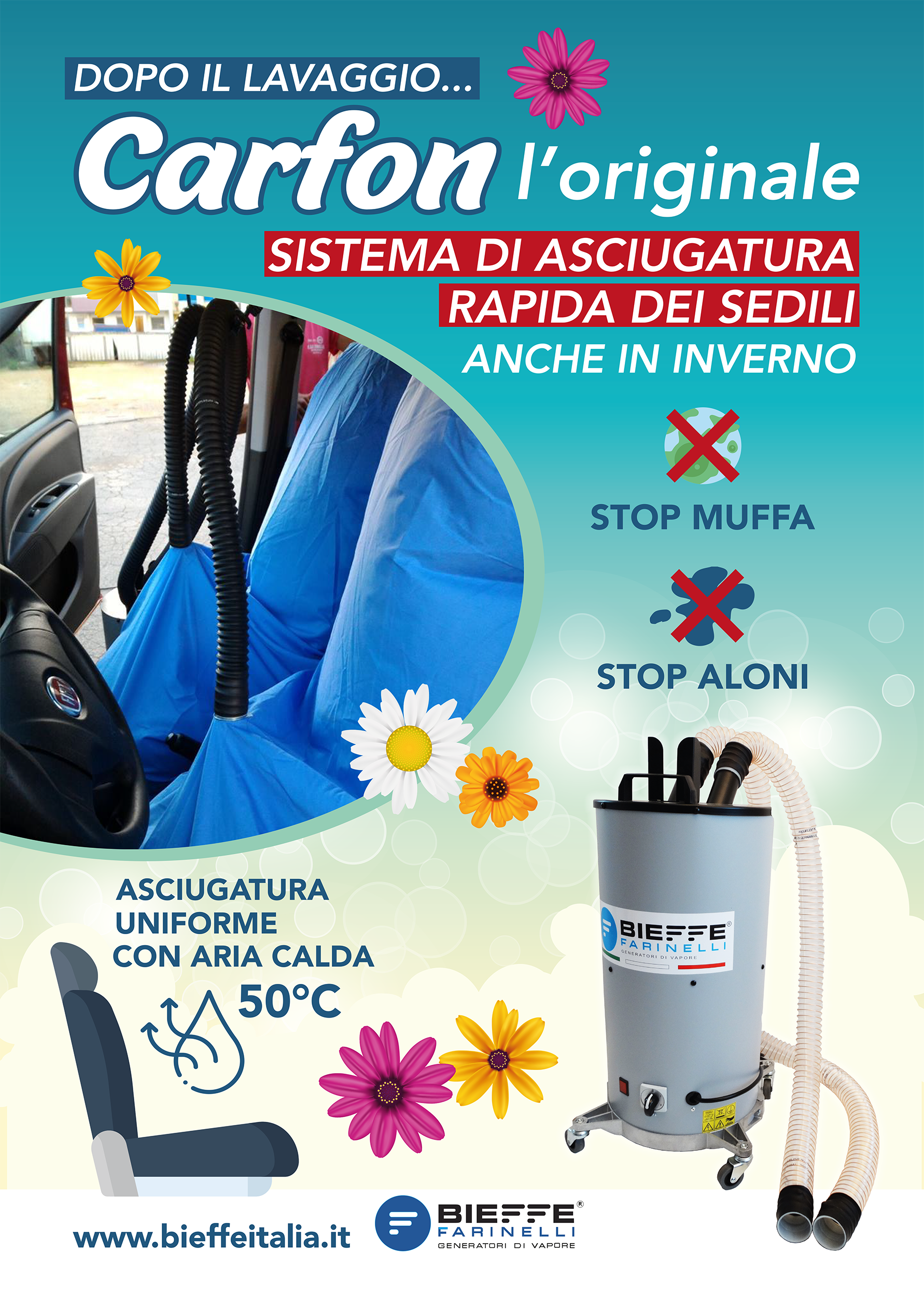 Veloce, potente, silenzioso e con un motore di ottima qualità, CARFON OPEN è perfetto per asciugare sedili e pavimento dell’auto. Con questo sistema si può riconsegnare l’auto al cliente in poco tempo e si può asciugare il pavimento umido dovuto alla neve durante l’inverno. CARFON OPEN è provvisto di due tubi flessibili per l’aria calda che è sufficiente bloccare all’interno dell’abitacolo. Disponibili i sacchi per l’asciugatura come accessori optional. Questi sono universali e si possono usare su tutti i tipi di sedili e pavimentazioni dell’automobile, divani, poltrone etc. I sedili e la tappezzeria del pavimento si coprono con il sacco e si asciugano simultaneamente grazie a un potente getto di aria calda.
