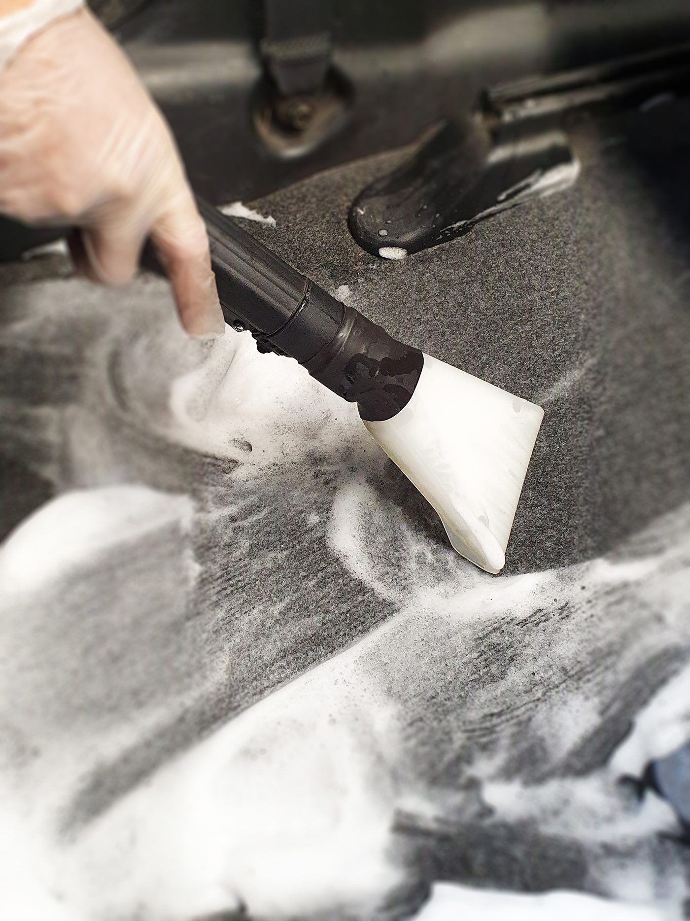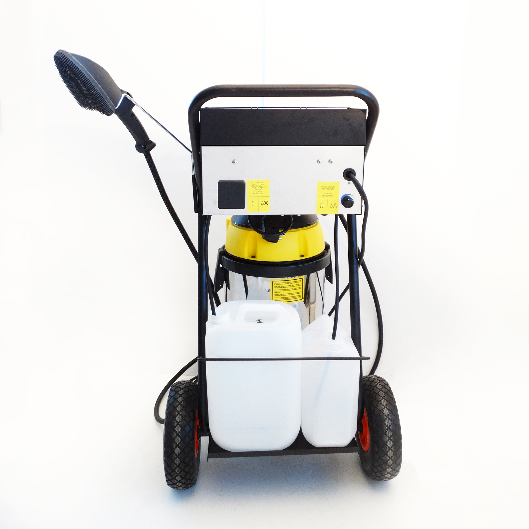 EXTRACTO FOAM PLUS, per il lavaggio della tappezzeria degli interni auto, con funzione di schiuma detergente attiva, estrazione e aspirazione con un motore bistadio di 1400W. Ideale per la pulizia di interni di automezzi, tappeti, divani, tende e materassi e tanto altro. Ottimo alleato anche per lavaggio a domicilio. Lavamoquette completa di sistema schiumogeno con compressore incorporato. La schiuma attiva viene erogata tramite la spazzola. Grazie alle sue setole morbide rimuove lo sporco e le macchie dalle superfici senza danneggiare il tessuto. La speciale bocchetta permette inoltre di estrarre lo sporco. Extracto Foam Plus per il lavaggio della tappezzeria delle auto e altri automezzi con schiuma attiva, è dotata di un aspiratore con motore bistadio da 1400W per aspirare solidi e liquidi che vengono poi raccolti nel fusto in acciaio inox.