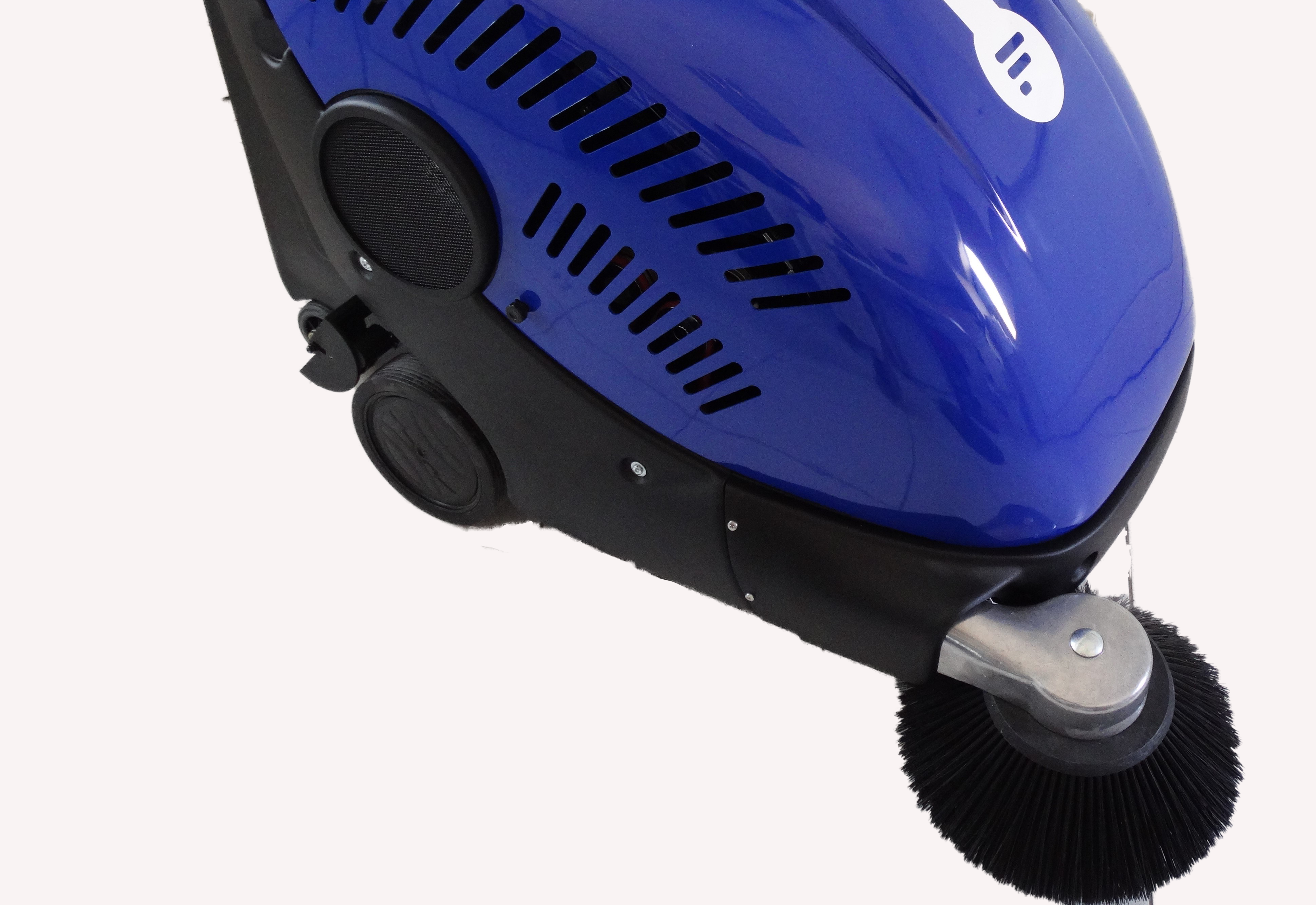 Imponente nella sua forma, la spazzatrice elettrica per esterni e interni è supportata da un telaio in acciaio verniciato con copertura in materiale plastico resistente agli urti, montato su quattro ruote di grande diametro che la rendono agile, confortevole e rapida. E’ inoltre completa di spazzola centrale e laterale in polipropilene regolabili e alza flap meccanico per raccogliere oggetti ingombranti. Questa spazzatrice è equipaggiata con un contenitore rifiuti di grande capacità dotato di manico per facilitarne il trasporto e lo svuotamento dei rifiuti. L’ampio filtro aspirazione a pannello e lo scuotifiltro meccanico garantiscono il completo abbattimento delle polveri e il rispetto dell’ambiente. I filtri sono facilmente lavabili. Tutti i controlli sono completamente accessibili all’operatore dal posto di guida senza bisogno di spostarsi. Ideale per usare, sia all’interno che all’esterno, in industria alimentare, imprese di pulizia, ristoranti, edilizia, negozi e per pulizia delle moquette.