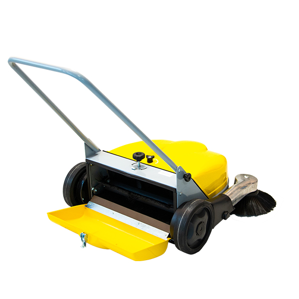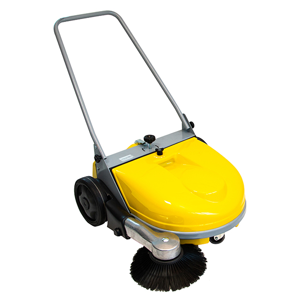 La spazzatrice a funzionamento manuale FLASH 650M, leggera e maneggevole, raccoglie efficacemente sporco e polvere su ogni tipo di pavimentazione.