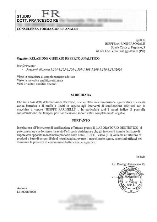 L’efficacia delle nostre macchine a vapore è stata comprovata da analisi scientifiche svolte da laboratori di analisi abilitati. Il vapore saturo a 165°C o 180°C, unito a disinfettanti, è tutt’ora uno dei metodi più efficaci ed economici per sanificare le superfici. Alcuni dei nostri sistemi a vapore per sanificare non hanno bisogno di risciacquo e non lasciano aloni. SCOPRI MAGIC VAPOR SANI, macchinario che unisce la forza del vapore ai disinfettanti, creando una nebbia che avvolge la superficie per una sanificazione rapida senza risciacquo.
